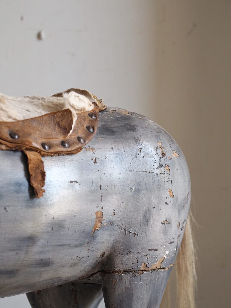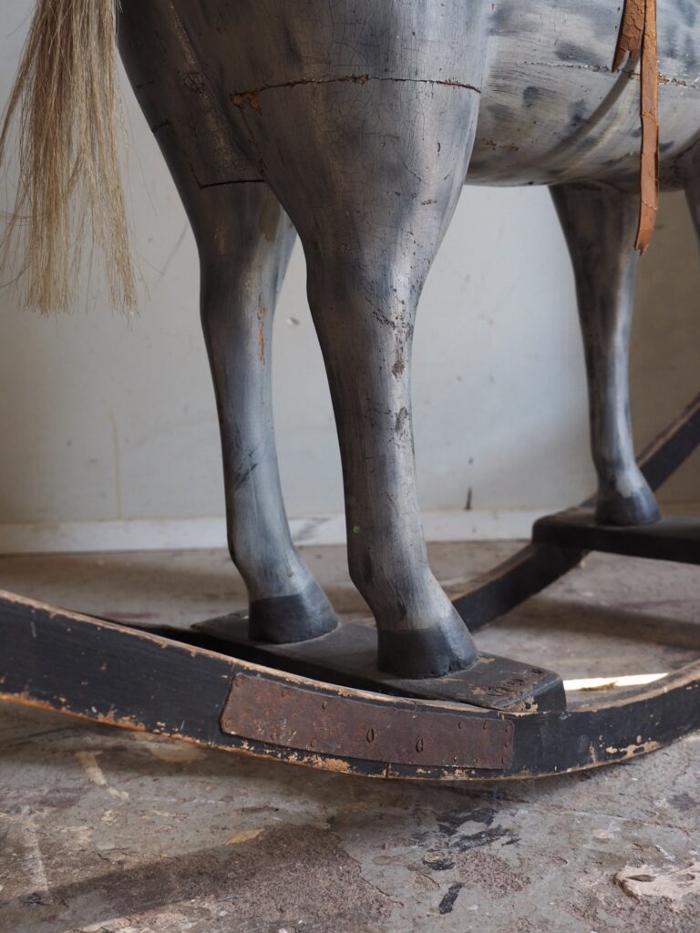Rakkaudella keinuttu hevonen saapui verstaalle mukanaan valtava määrä vaurioita. Keinuhevoselta puuttui harja ja hännästä oli jäljellä vain tupsu. Valtaosa nahkaosista puuttui kokonaan ja satulasta oli jäljellä vain paloja. Upea maalipinta oli paikoittain erittäin heikosti kiinni ja vaati maalinkiinnitystä. Toinen jalaksista oli murtunut ja paikattu metallilla jälkeenpäin. Myös korvasta puuttui palanen.