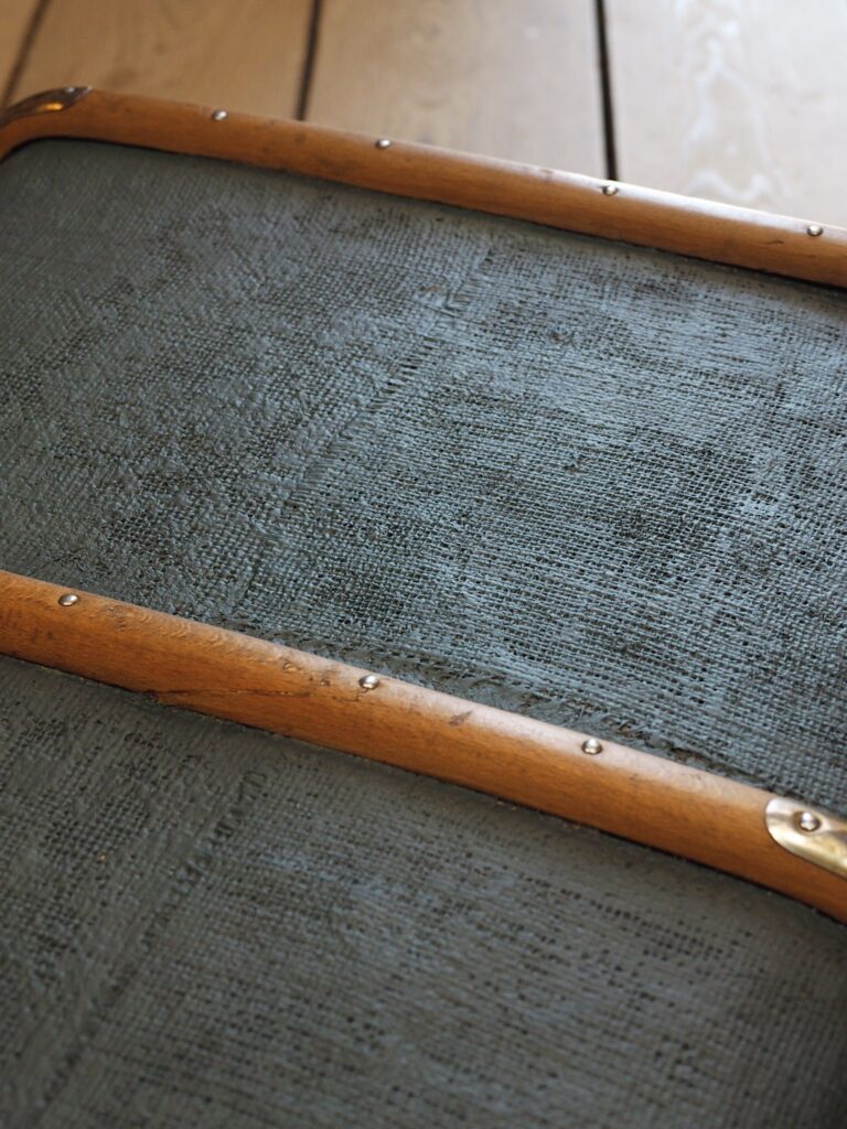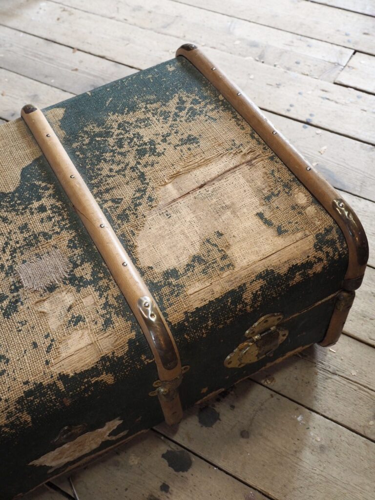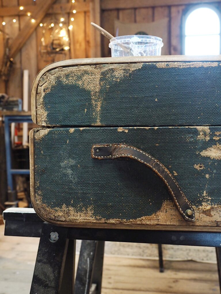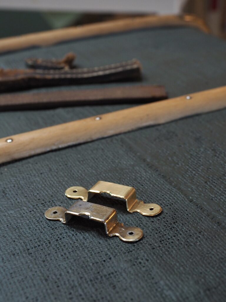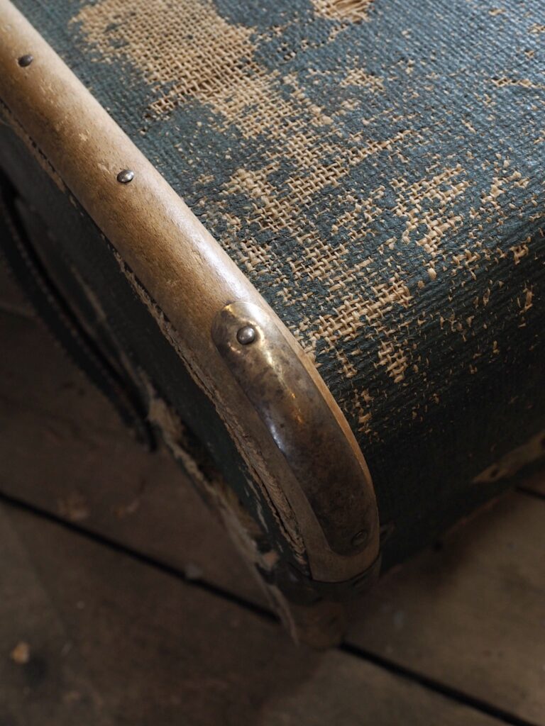 Maailmaa nähnyt matkalaukku päätyi työpöydälle juuri ja juuri yhtenä kappaleena. Vanhassa matkalaukussa oli lukemattomia pieniä ja isompia vaurioita. Isoin vaurioista oli kannen saranakohta joka oli lähes irti. Vaurioituneen saranakohdan lisäksi matkalaukusta korjattiin puhki kulunut kangaspinta sekä sen pintakäsittely. Lisäksi puuttuvat ja hajonneet metalli- sekä nahkaosat uusittiin.
