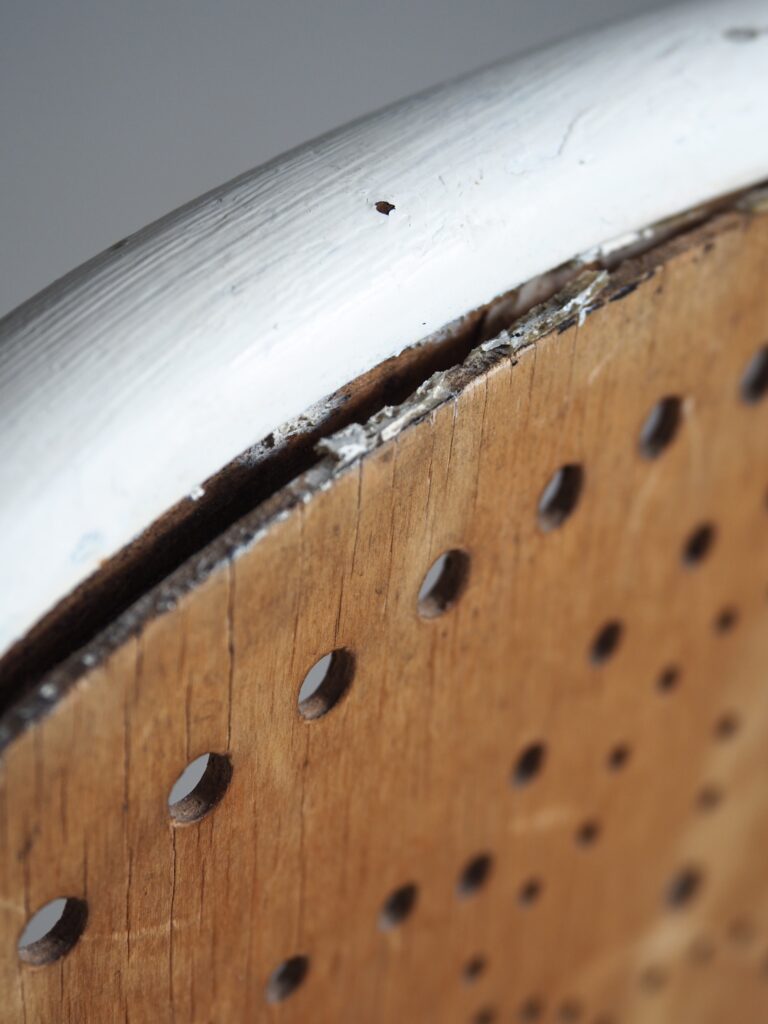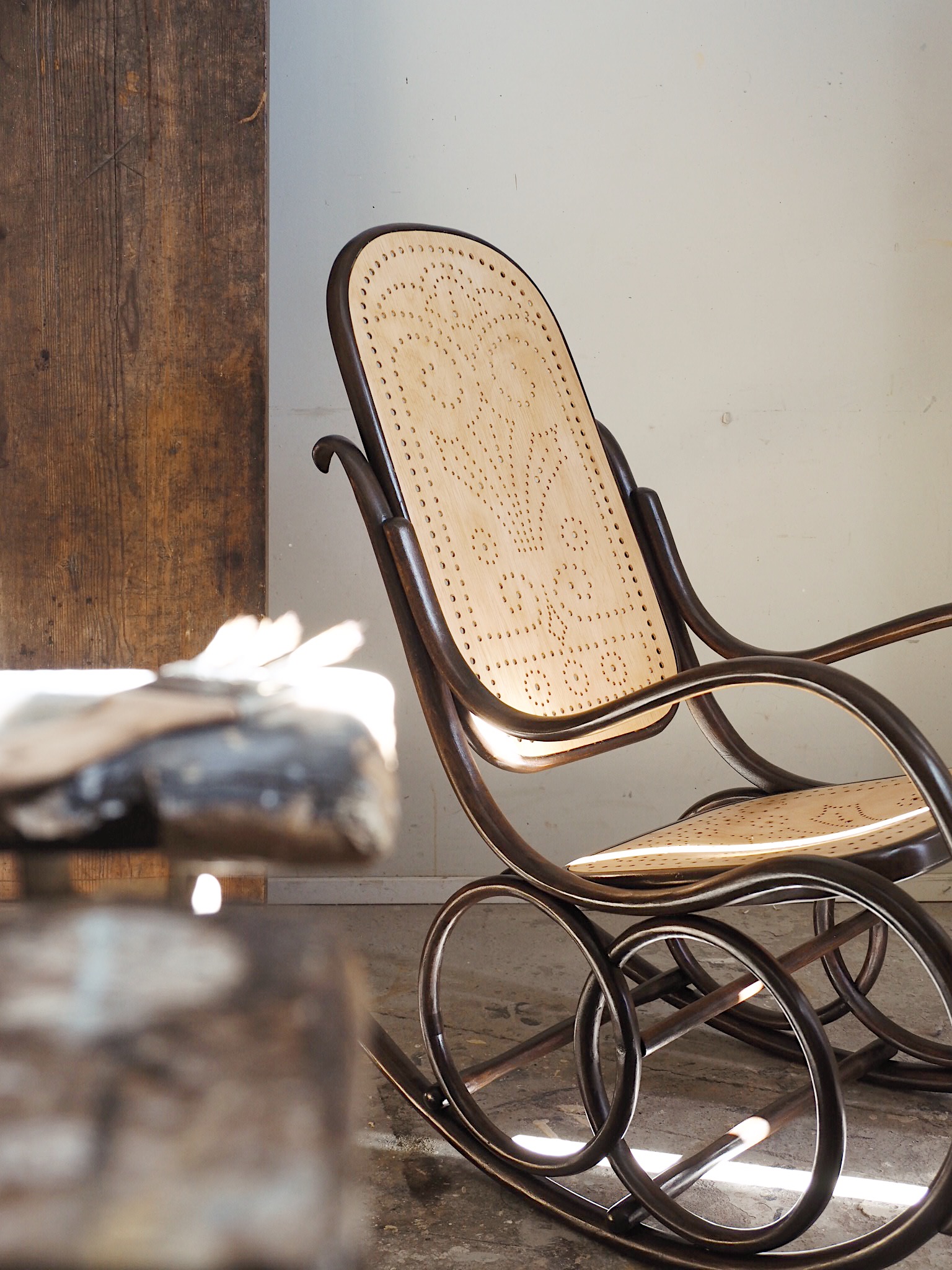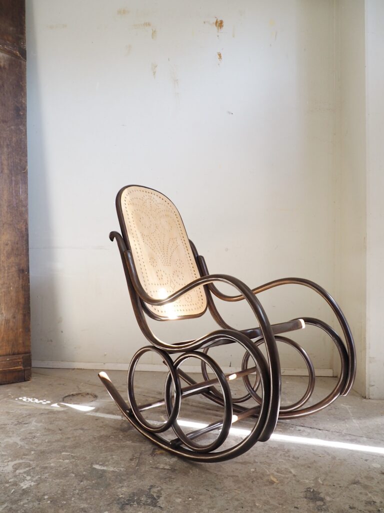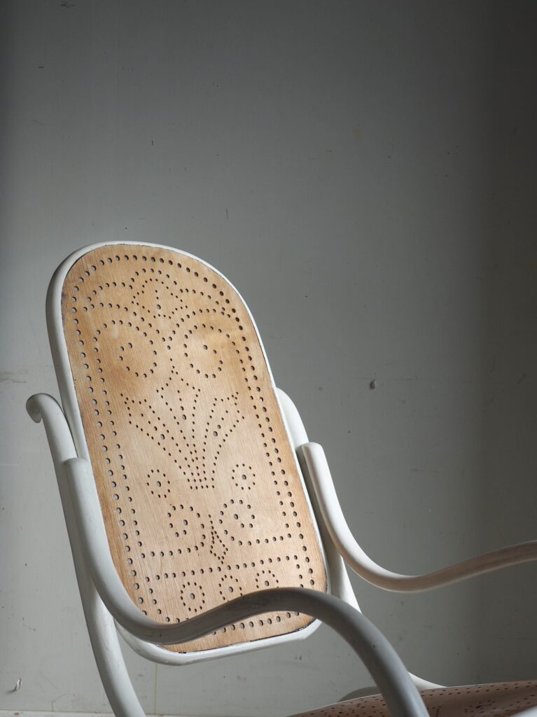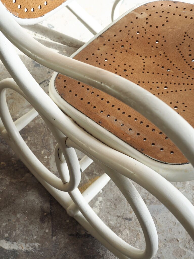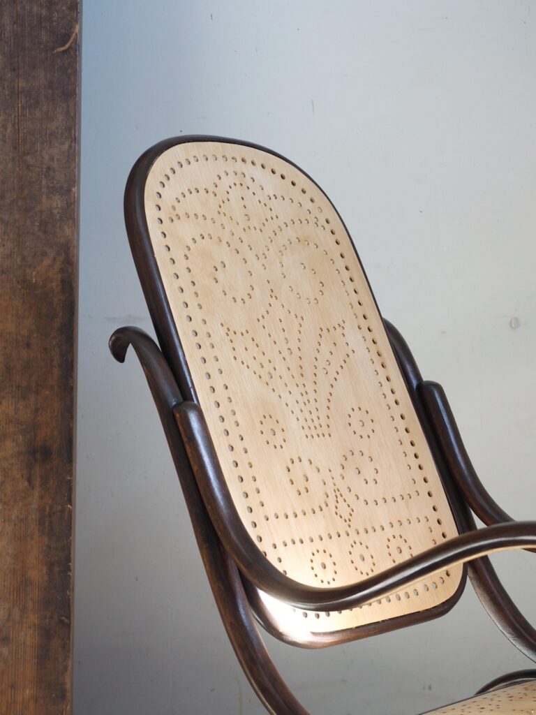 Thonetin myöhemmin päällemaalatulle keinutuolille tehtiin maalinpoisto ja uudelleen pintakäsittely alkuperäistä vastaavaksi. Samalla kaikki liitokset avattiin ja kiinnitettiin uudelleen kunnolla.